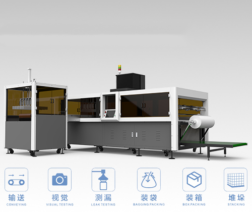 無需人工操作,掛袋、入瓶、堆垛等動作均由機器自動完成,根據(jù)瓶身大小及裝袋數(shù)量而定,產(chǎn)量可以達到12000瓶/小時。